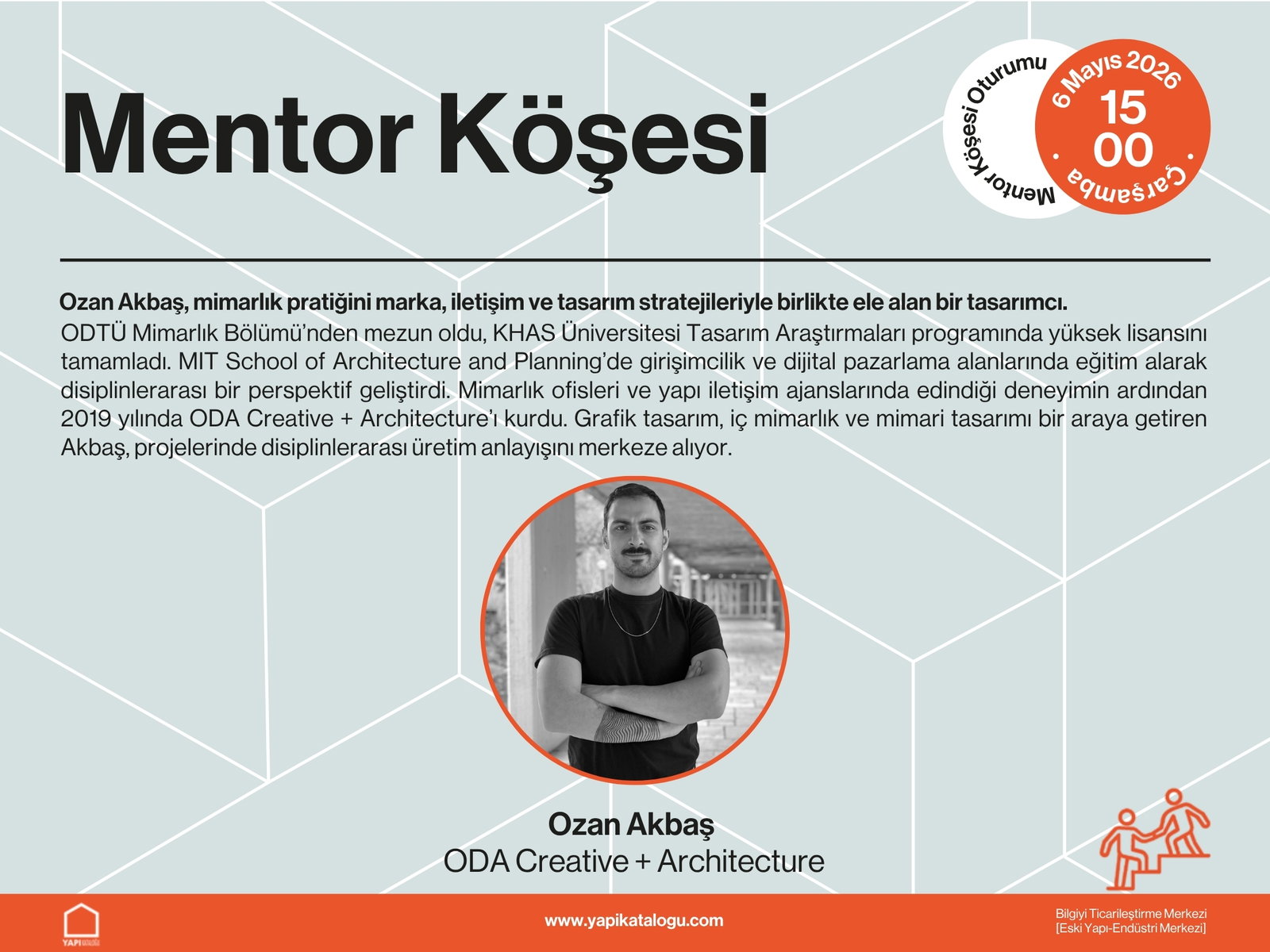 Mentor Köşesi, öğrenciler için mimarlık ve tasarım alanında deneyimli isimlerle bire bir sohbet etme fırsatı sunuyor. İlham almak, soru sormak, kariyerini şekillendirmek için bu özel alan seni bekliyor.