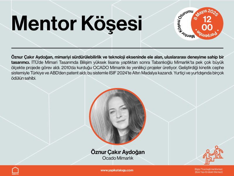Öznur Çakır Aydoğan, mimariyi sürdürülebilirlik ve teknoloji ekseninde ele alan, uluslararası deneyime sahip bir tasarımcı. İTÜ’de Mimari Tasarımda Bilişim yüksek lisansı yaptıktan sonra Tabanlıoğlu Mimarlık’ta pek çok büyük ölçekte projede görev aldı. 2010’da kurduğu OCADO Mimarlık ile yenilikçi projeler üretiyor. Geliştirdiği kinetik cephe sistemiyle Türkiye ve ABD’den patent aldı; bu sistemle ISIF 2024’te Altın Madalya kazandı. Yurtiçi ve yurtdışında birçok ödülün sahibi.