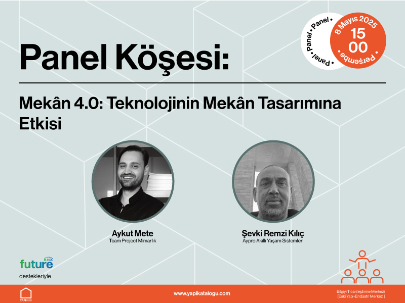 Aypro'nun destekçisi olduğu panelde, TEAM Project Mimarlık ile birlikte akıllı yaşam sistemlerinin, yapay zekâ destekli araçların, enerji verimliliği ve konforun günümüz mekânlarındaki rolü tartışılacak. Tasarım süreçlerinde teknolojiyi verimli kullanan ekibin deneyimlerinden yola çıkılarak, "geleceğin yaşam alanları nasıl şekilleniyor?" sorusuna yanıt aranacak.