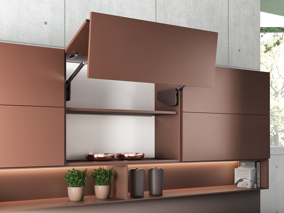 Multi-Mech ile kapaklar kusursuz bir şekilde katlanarak açılır ve istenilen seviyede durdurulabilir. Mükemmel açılma hareketi, dolap içerisine kolay erişim sağlayarak konforu maksimum seviyeye taşır. Kapaklar kusursuz bir sessizlik ile yavaşça kapanır.