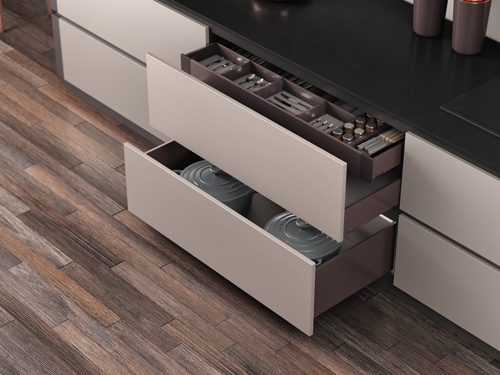 SAMET, farklı renk, materyal ve yükseklik seçenekleri ile çekmeceler için geliştirdiği Flowbox Çekmece Sistemleri ile mutfak ve banyolara yeni bir kimlik kazandırıyor. Üstün ray sistemi, geliştirilmiş fren mekanizması ve yavaş kapanma ve tek bir dokunuşla açılıp-kapanma özelliği ile sessiz ve kusursuz hareket sağlarken, mükemmel fonksiyon ve kullanım özelliklerini tasarımla buluşturuyor.