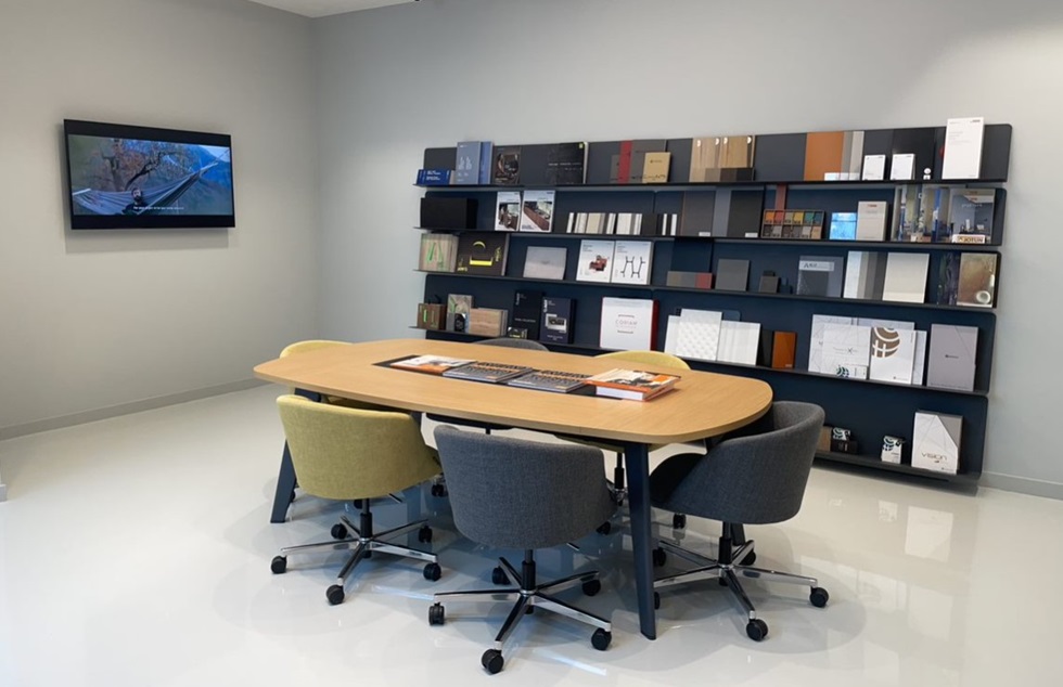 Blum İstanbul Showroom’da özel tasarlanmış “Malzeme Kütüphanesi ve Proje Alanı” bölümlerinde müşteriler, Blum uzmanları ile projelerini görüşüp, alternatif seçenekleri belirleyebilir, sorularını Blum danışmanlarına sorabilir ve e-hizmetler programlarıyla planlamadan üretime kadar online hizmetlerden faydalanabilirler. .
