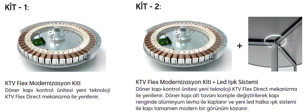 dormakaba, sadece servis hizmetiyle değil, aynı zamanda modernizasyon kitleri ile erişim çözümlerinizin güncel kalmasına olanak sağlıyor. Mevcut otomatik döner kapınızın dış görünümünde herhangi bir değişiklik yapmadan, sadece kanopi içerisinde bulunan elektronik aksamı değiştirerek, yeni nesil otomatik döner kapınıza sahip olmanızı sağlıyor. Bu KTV FLEX elektromanyetik motor sayesinde; herhangi bir tadilat ve yıkım işlemine ihtiyaç duymadan, mekanik aksamı (kanatlar, cam ve kanopi) değiştirmeden, hızlı termin süresi avantajı ile döner kapınızı rahatlıkla yenileyebilirsiniz. KTV Flex Modernizasyon Kitleri ile döner kapılarınızı güncelleyerek, 1000€’ya varan fiyat avantajları sağlayabilirsiniz.