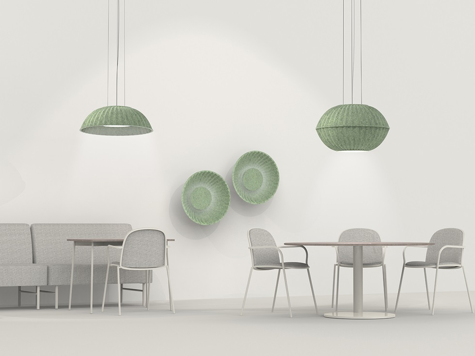 Ünlü Danimarkalı tasarımcı Boris Berlin tarafından Feltouch için özel olarak tasarlanan Step ve Segment modüler akustik aydınlatma sistemleri, Orgatec 2024'te ilk kez sergilenecek. Step Modüler aydınlatma, “basamaklı koni” şekli ile ışık konisinin görüntüsüne atıfta bulunurken; Segment Modüler aydınlatma, “Pantheon’un kubbesi gibi üstte açıklığı olan “kubbe” şekli görünür bir ışık kaynağı olmadan odada ilginç bir “boş” kubbe yaratır. %50 geri dönüştürülmüş PET keçeden üretilen bu sistemler hem ışığı yansıtan hem de sesi emen özelliklere sahiptir ve modüler yapıları çeşitli iç mekân ihtiyaçlarına uyum sağlıyor.