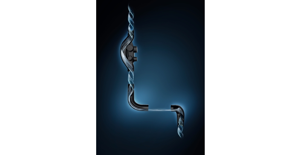 Supertube sistemi, Geberit HDPE Sovent Fittingi, Geberit HDPE BottomTurn Dirseği, Geberit HDPE BackFlip montaj elemanları ile uygulanıyor. Geberit HDPE Sovent fittinginin optimize edilmiş geometrisi, iniş borusu içindeki suyu yönlendirerek suyun dönmesini sağlıyor. Böylelikle su, boru çeperi boyunca sorunsuz bir dinamikle akıyor. Bu sayede çevresel akış elde edilerek yüksek deşarj kapasitesiyle birlikte sabit ve tutarlı bir hava sütunu oluşturuluyor. Geberit HDPE BottomTurn dirseği ise hava akışının kesilmeden çevresel akışın yatayda katmanlı bir akışa dönüşmesine olanak tanıyor. Bununla birlikte yatay boru hattındaki üst katmanda hava, alt katmanda da su akışı devam ediyor. Bu değişiklik sayesinde konvansiyonel çözümlere kıyasla akış hızı kayıplarının önüne geçilirken performans da üst seviyeye çıkıyor. Kıvrımlı Geberit HDPE BackFlip dirseği de kusursuz iç geometrisi sayesinde katmanlı akışı çevresel akışa dönüştürüyor. Bunun sonucunda çevresel akış ile hava sütunu iniş kolonu boyunca korunuyor.