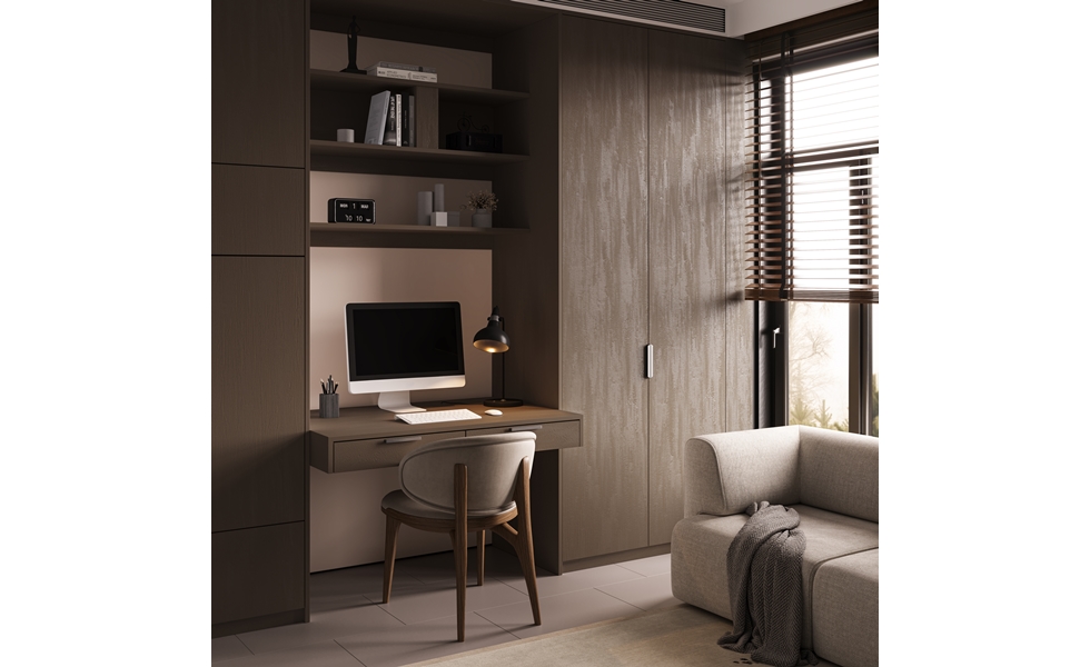 Register özellikli Art yüzey, görsel olduğu kadar dokusal bir deneyim de sunuyor. Bu özellik yüzeyin dekor kâğıdıyla senkronize hizalanması ile yüzeyde üç boyutlu doku yakalanmasını sağlıyor; böylece görsellik artarken dokunulduğunda derinlik hissi de yaratıyor. Art yüzey, çift taraflı kullanım imkânıyla ise mimari projelere esneklik kazandırıyor.