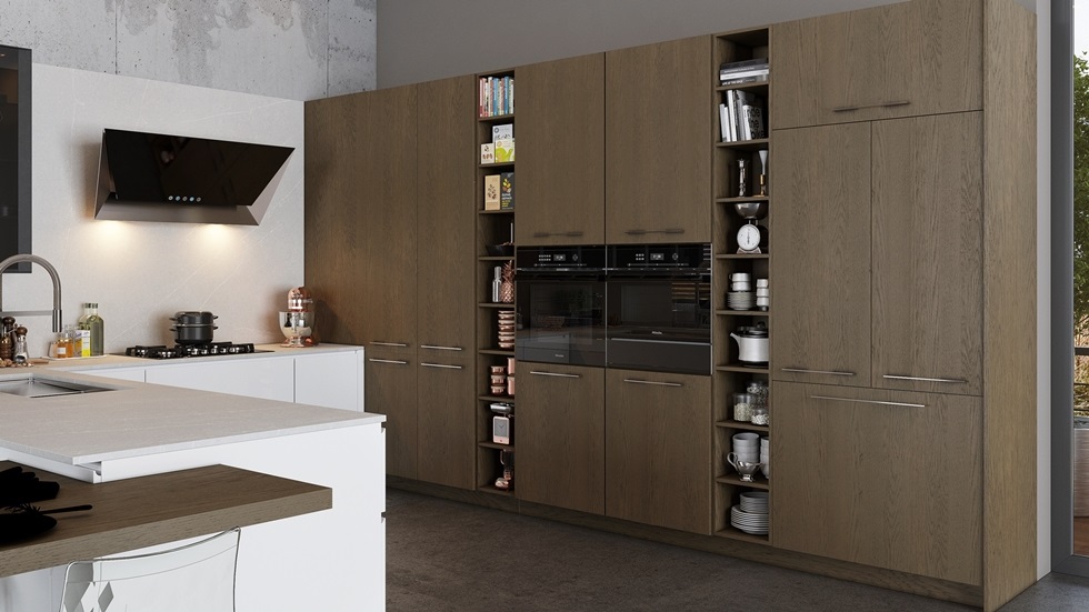 Depolama kapasitesinin artırılması, küçük hacimlerde en kritik tasarım adımlarından birini oluşturuyor. Tavan kotuna kadar yükselen modüller, tam açılım ray sistemine sahip çekmeceler ve kör köşe mekanizmaları, kullanılabilir hacmi milimetre seviyesinde büyütüyor. Kullanım yoğunluğu yüksek mutfaklarda donanım kalitesi, uzun ömür açısından belirleyici bir rol oynuyor.