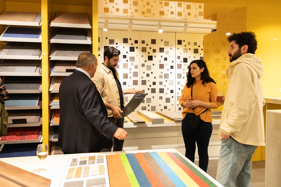 Dünyaca ünlü birçok esnek zemin kaplama firmasının, Türkiye distribütörlüğünü bünyesinde bulunduran Anıl Zemin Market; Karo Halı, LVT-LVP zemin kaplamaları, PVC zemin kaplamaları, Linolyum zemin kaplamaları, Paspas ve Yükseltilmiş Döşeme sistemlerinin satış ve uygulamaları ile ilgili katılımcılara detaylı bilgiler verildi. Farklı branşlara sahip mimarlar, Anıl Zemin’in showroomunda hemen hemen her segment ve fiyat aralığında zemin kaplama ürün seçeneklerini inceleme ve bilgi alma fırsatı bulmuş oldular.