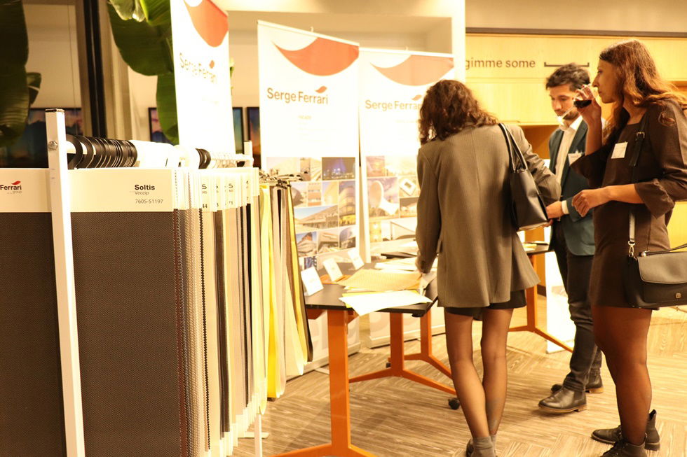 Sunumlardan sonra Serge Ferrari Group, Güneş Koruması, Mimari Tekstil, Cephe Tekstili, Mobilya ve Tasarım ve Yat Tekstili alanlarındaki yapı malzeme ürünlerinin örnek numunelerini mimarlara tanıtıp kendi moodboardlarını oluşturabilecekleri bir alanda detaylı bilgi aktarımı da gerçekleştirdi.