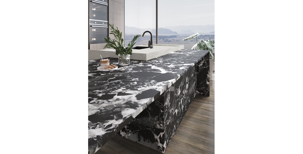 T-One Constantinople Tezgahı, 162x323 cm yeni ebat ve 12 mm - 20 mm kalınlık seçenekleriyle sınırları ortadan kaldırarak, profesyonellerin ve dekorasyon tutkunlarının hayallerine göre şekilleniyor. V-INTECH teknolojisiyle güçlendirilmiş yapısı sayesinde, doğal damarlar derinliklerde ve kenarlarda kesintisiz devam ederek üst düzey bir bütünlük sağlıyor.