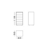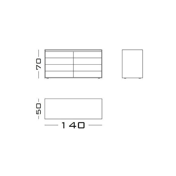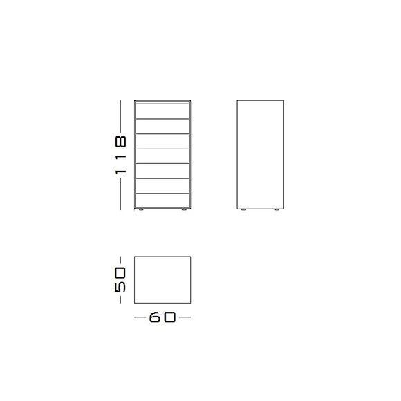 Set, ahşap ve özel teknikle uygulanan akrilik boya bitişleri ile farklılaşan, arka ve ön görüntüsü aynı olması sayesinde mekan bölücü olarak da kullanılabilen, farklı yüksekliklerde üretilen çok amaçlı bir depolama ünitesidir.