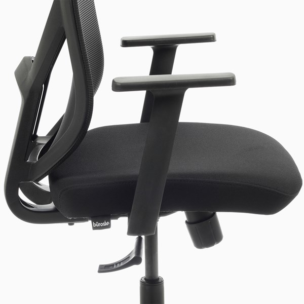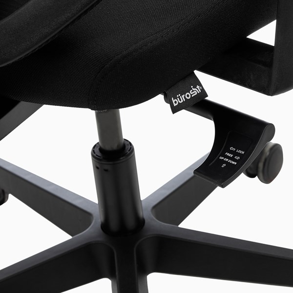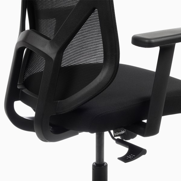 o Yumuşak dokulu kolçaklar, yukarı–aşağı ayarlanabilir oturum yüksekliği ve başlık desteğiyle gün boyu konforu sabit tutar.
