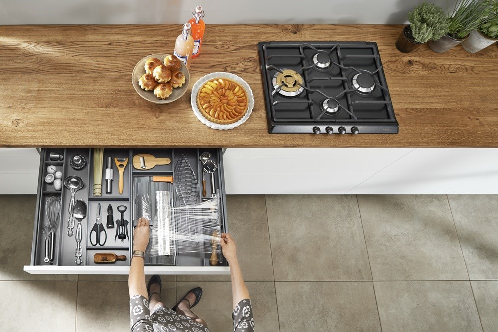 LEGRABOX ve MERIVOBOX’a özel iç bölümlendirme sistemi AMBIA-LINE, zarif bölme tasarımı ile tüm yaşam alanlarında güzel bir dolap içi düzeni yaratır. Düzen sisteminin sade tasarımı, LEGRABOX ve MERIVOBOX’ın düz çizgileri ile uyumludur. Çekmece ve derin çekmeceler içinde bölmeler kolay yerleştirilir ve esnek kullanılan ara bölmeler ile ihtiyaca özel ayarlama yapılır. Mıknatıslı sabitleme veya kaymayı önleyici ayaklar ile güvenli yerleştirme sağlanır.