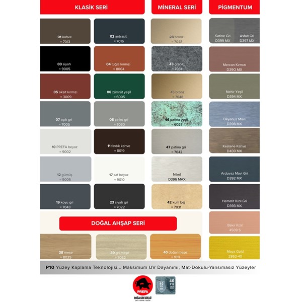 40 yıla kadar malzeme ve yüzey garantisi