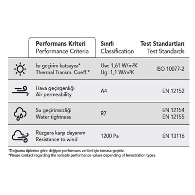 • Yüksek ısı yalıtımı - Uw: 1,61 W/m2K
