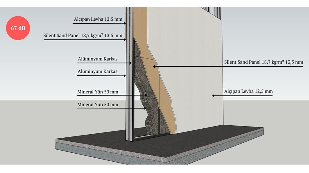 • 13,5 mm kalınlığı sayesinde alan kaybı olmadan yüksek ses yalıtımı sağlar