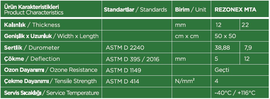 %100 geri dönüşümlü ve üretimde atık oluşturmayan modüler titreşim alıcı Rezonex, jeneratör, trafo ve klima santralleri gibi yüksek frekanslı makinelerin oluşturduğu titreşim ve gürültüyü azaltmak amacıyla kullanılır. Ayrıca modüler yapısı sayesinde de kullanıcıya istenilen boyutlarda kullanılabilme imkanı sunar.