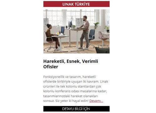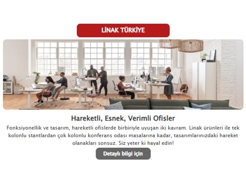LINAK® yaptığı şeylerde müşterilere, çalışanlara ve çevreye karşı sorumluluğunun bilincindedir. Güven yaratmak, kim olduğunun doğal bir parçasıdır. Bu güne kadar mottosu; 'We Improve Your Life - Hayatınızı İyileştiriyoruz' yaptığı her şeye yansır. İster ürün geliştirme, ister operasyon veya teknolojinin uygulanması ile ilgileniyor olsunlar, her zaman müşterilerinin kendileriyle iş yapmasını kolaylaştırmanın ve nihai olarak son kullanıcıların yaşamlarını ve çalışma koşullarını iyileştirmenin yollarını arar.