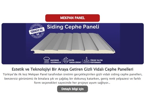 Mekpan Panel, standartlarda “Kendini Taşıyan, Çift Yüzeyli, Metal Kaplamalı Yalıtım Panelleri” olarak tanımlanan, sektörde ise “Sandviç Panel” olarak bilinen ürünlerin ve bunların metal aksesuarlarının üretimini kontinyu hat teknolojisi ile üretmektedir. Faaliyetlerine 2011 yılında Konya-3.Organize Sanayi Bölgesindeki 45.000m² üzerine kurulu 8.000m² olan tesiste, yıllık 3.400.000m² kapasiteli tek hat ile başladı.