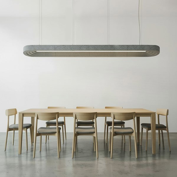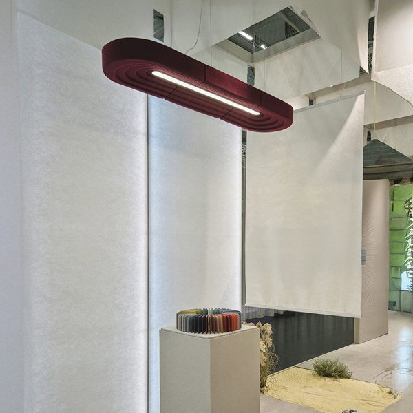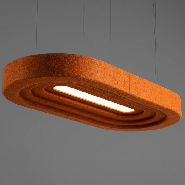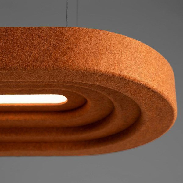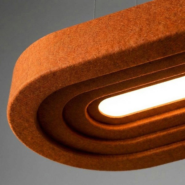 Layer Sarkıt Aydınlatma, akustik ve aydınlatma gereksinimlerini birlikte ele alacak şekilde Feltouch Tasarım Ekibi tarafından geliştirilmiştir. %50 geri dönüştürülmüş PET keçeden üretilen ürün, keçe yüzeyinin ses emici özelliği sayesinde ortam gürültüsünün azaltılmasına katkı sağlarken, ışığı yumuşak ve homojen bir biçimde dağıtarak görsel konfor oluşturur. Akustik fayda ile aydınlatma performansı, dengeli ve kontrollü bir mekânsal atmosfer oluşturmak üzere bir arada değerlendirilmiştir.