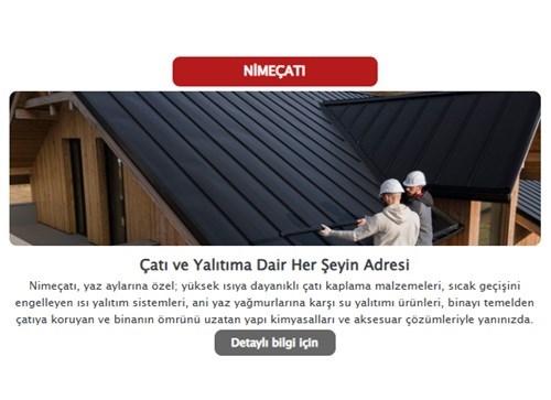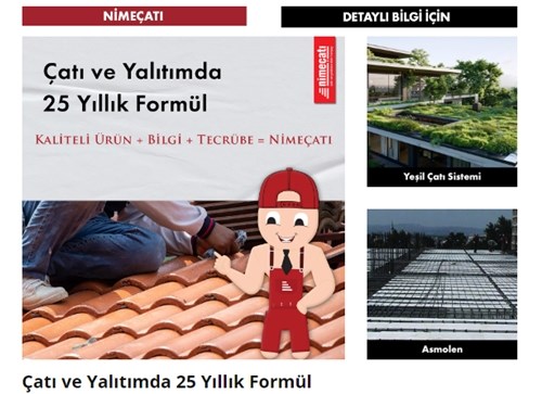 Nimeçatı; fiyat ve kalite dengesini koruyarak, sektörün gelişimine katkıda bulunarak, büyüyerek ve ‘büyümek yetmez, büyütmek de gerekir’ diyerek attığımız her adımda, 20 yılı aşkın süredir dürüstlük ve doğruluk ilkeleri çerçevesinde hizmet sunuyor.