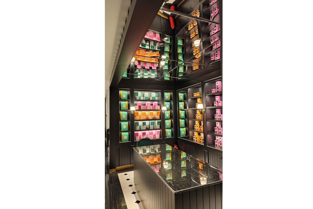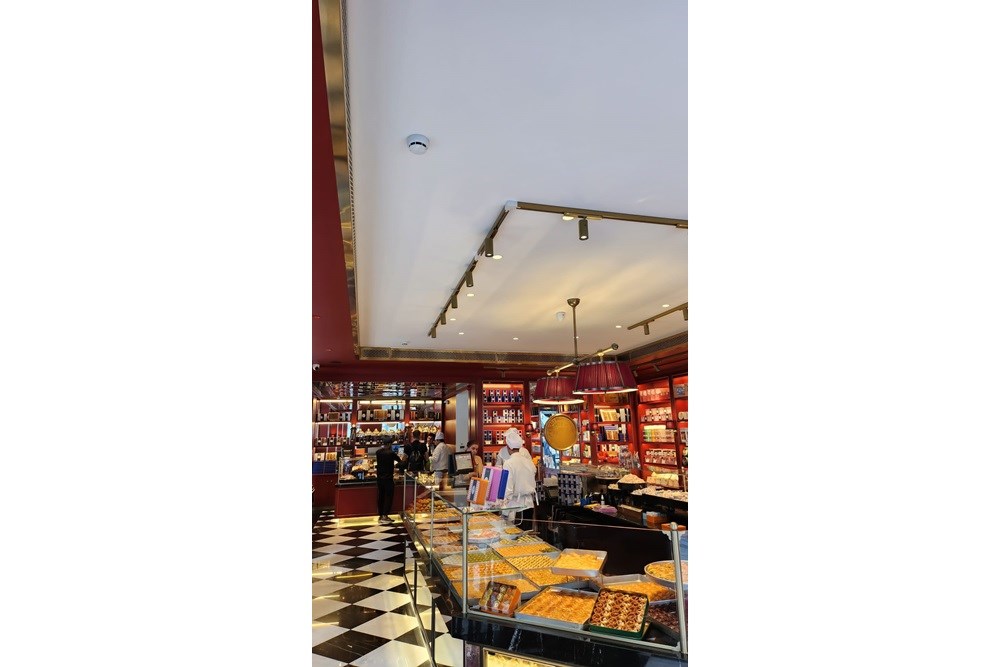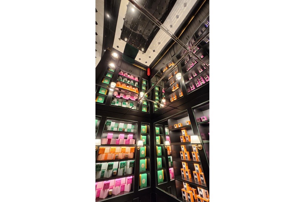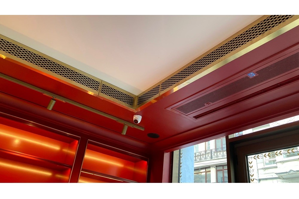 Bu projede, Metaloop tarafından altın renkli lazer kesim menfezler ve süper ayna tavan panelleri ile paslanmaz çelik malzemeler kullanılarak, satış dükkanına zarif ve lüks bir görünüm kazandırılmıştır.