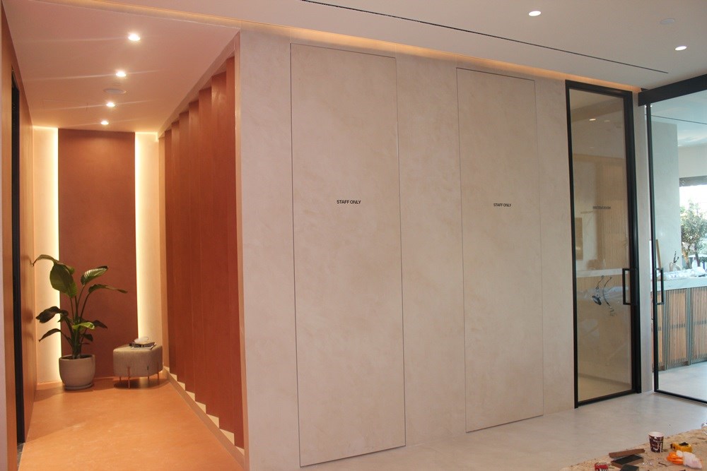 Proje kapsamında ölçüye özel üretim yapılarak yenilenme sağlanmıştır. Projede Rall 9016 lake gizli kasalı kapılar, çift taraf seramik uygulama ile kullanılmıştır. Kol, kilit mevcuttur.