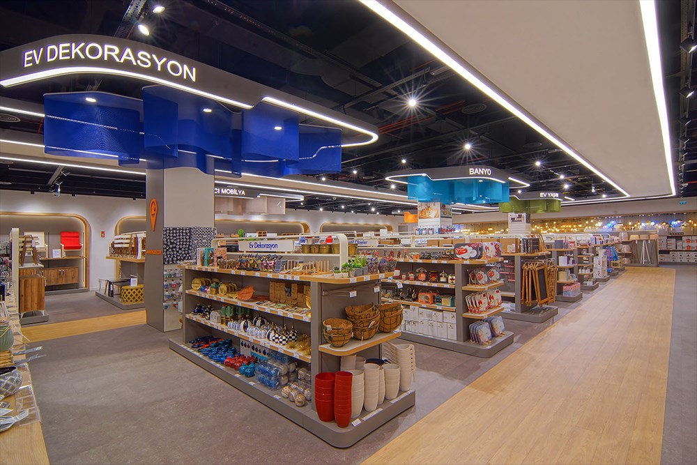 Genel itibarı ile mağaza ve market konseptlerinin harmanlanması talebi de ayrı bir tasarım verisi olarak değerlendirilmiş ve market ambiansının kaybolmaması da ayrıca önemsenmiştir. Bu maksatla, müşterileri girişten itibaren karşılayan ve tüm kategorileri gezdiren bir iç yol tasarlanmış ve tüm kategoriler bu yol üzerinde konumlandırılmıştır.