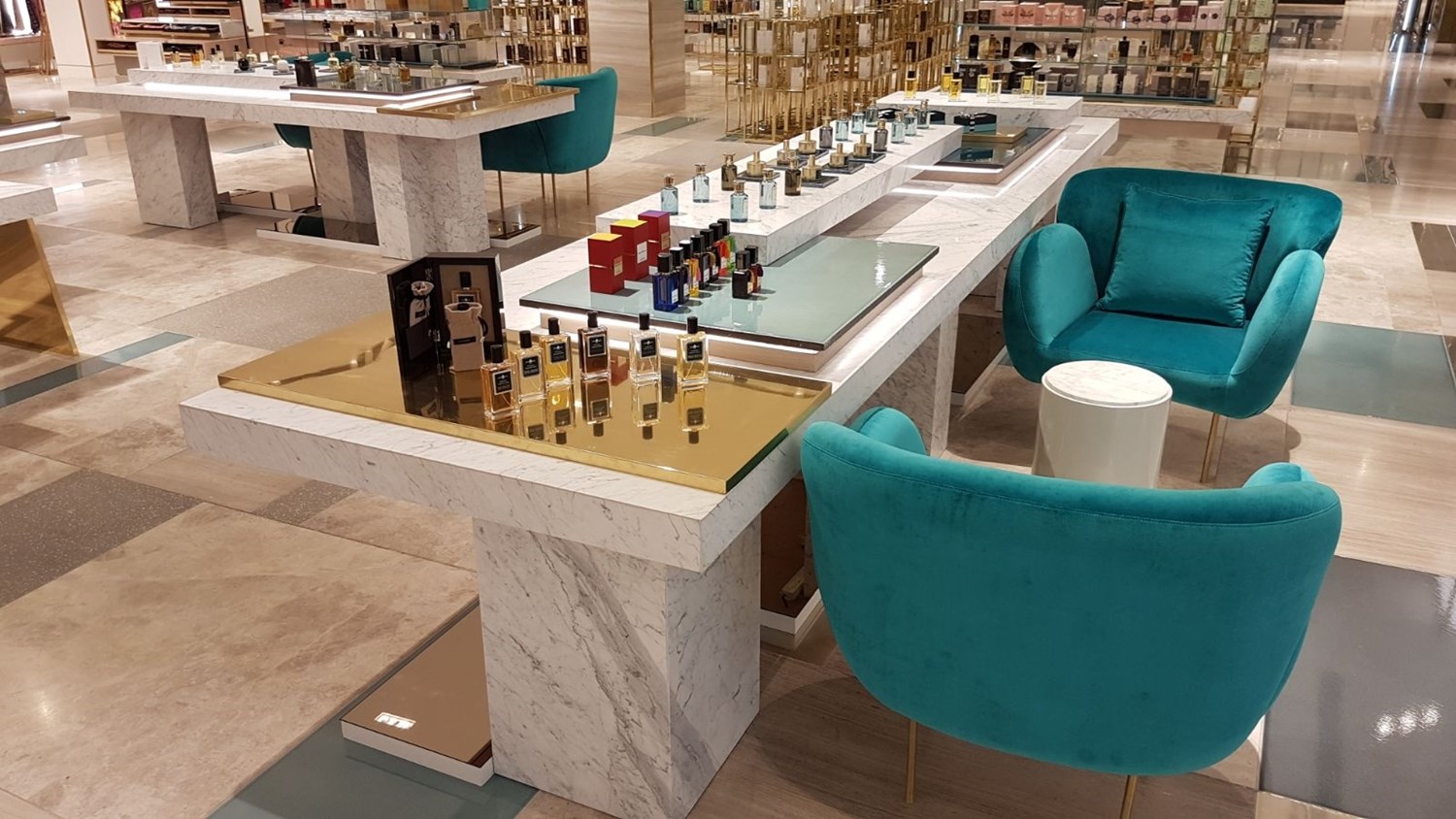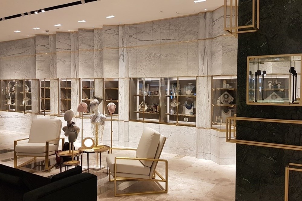 Doha, Katar'daki Harvey Nichols mağazasında SilkarStone'un Carrara (P) Alüminyum Honeycomb, Verde Guatemala (P) Alüminyum, Honeycomb Platinium Weave(P) Alüminyum Honeycomb ürünleri kullanılmıştır.
