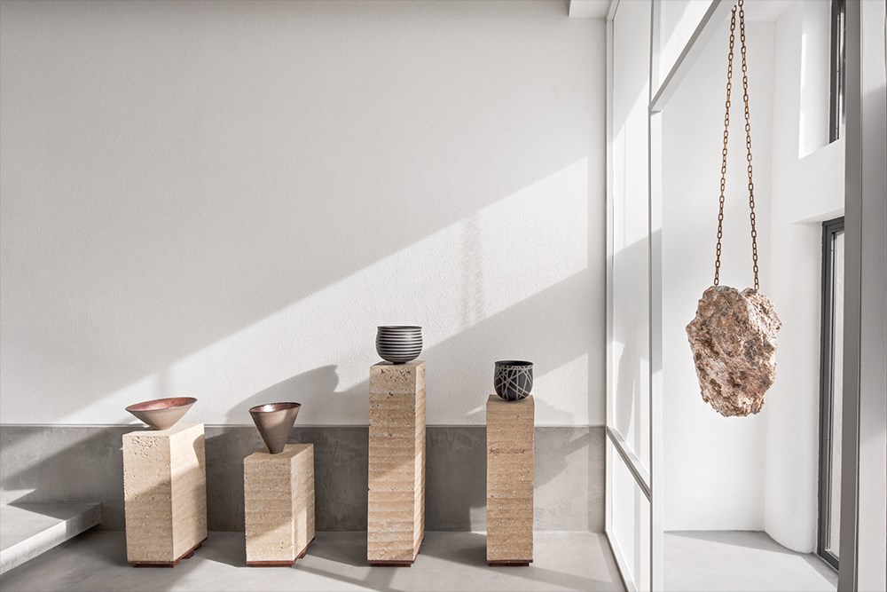 Malzeme ve renk seçimleri NAYA ürün ve kimliğindeki brüt beton, toprak tonlarından ve dokularından ilham alır.