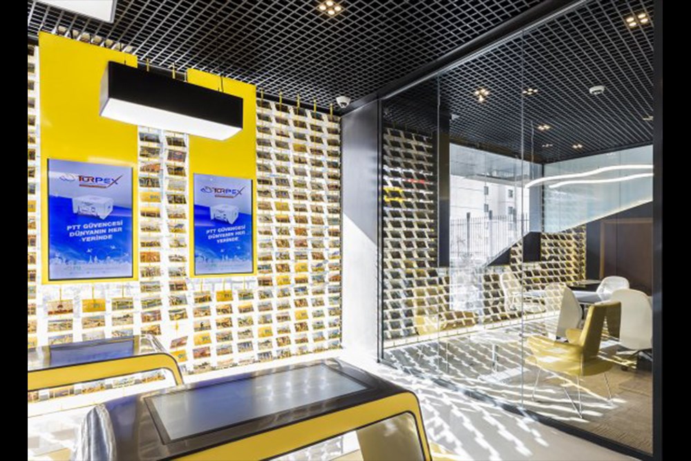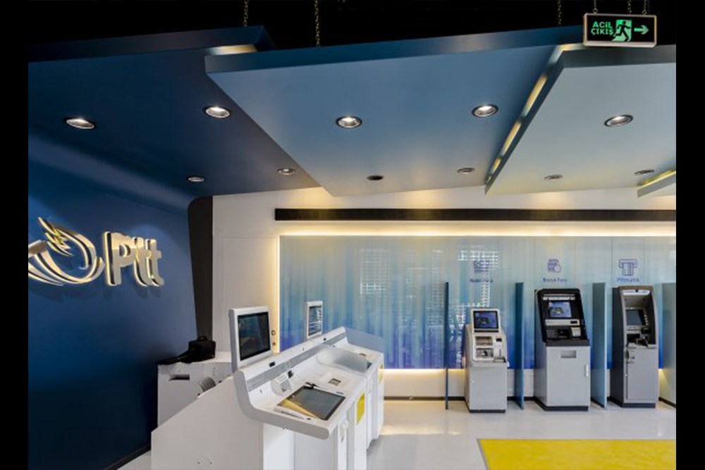 PTT için, PTT İnovatif adını verdiğimiz, teknoloji ve yeniliği ön plana çıkartan ve süreçlerin dijitalleşmesiyle minimum çalışan sayısı ile işleyebilen bir Flagship şube konsepti oluşturduk. Bilişim Daire Başkanlığı’nın girişinde yer alan yeni PTT, şube tasarımı ile geleceğin detaylı bir önizlemesini yapıyor.