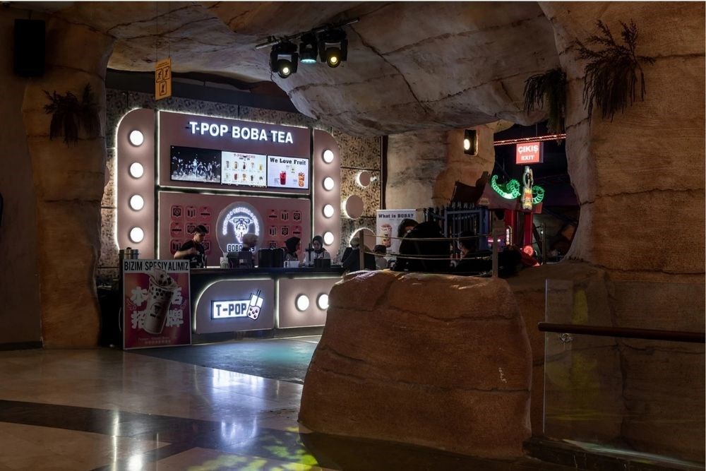 BOBA Bubble Tea Shop, çocuklara özel olarak tasarlanmış, eğlence parkının bir parçası olarak hizmet eden bir satış alanıdır. Dağ temalı eğlence parkının girişinde, konsept olarak al-götür servisi benimseyen kafeden, kullanıcılar kişiye özel siparişlerini vererek içeceklerini teslim alabilirler. Tasarımın tamamıyla eğlenceli, kolay erişilebilir olması ve adeta “instagramlanabilir” bir vitrin gibi çalışması talep edilmiştir.