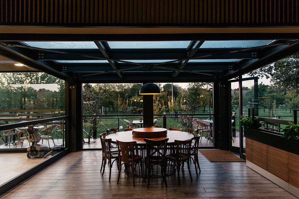 • Vizon-gri renk tonlaması ile antrasit rengi doğramalara ahşabın sıcaklığı ile denge kurmak, Bu yaklaşımlardan yola çıkılarak, var olan binaya, kamu yararına can ve mal güvenliğine yönelik, vidalı sistem çelik konstrüksiyon, cam ve ahşap malzemeler kullanılarak iç dekorasyonu yapılmıştır.