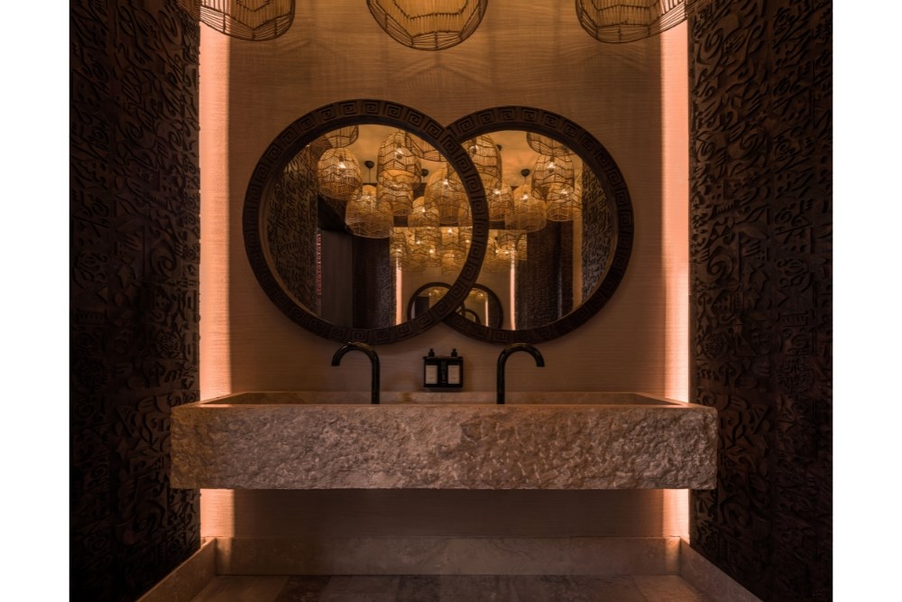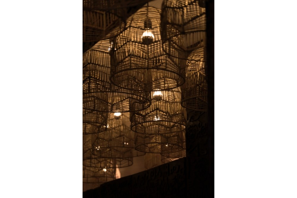 Mekânın girişindeki karşılama alanının devamında bulunan kuş figürlerinin yer aldığı koridor, arka planda yankılanan kuş sesleriyle Fenix'in mitolojik efsanesinden ilham alan bir kuş yuvasını çağrıştırırken gelen misafirleri dinginlik ve gizemle ana hacme hazırlıyor. Kemerlerin sarmaladığı ana hacimde karşımıza çıkan ve botanik öğelerle süslenen basamaklar, yer yer sedirlere ve saksılıklara dönüşebilen fonksiyonel bir tasarıma sahip. Beton bazlı bir terracotta malzeme ile üretilen bu öğelerin sedire dönüştüğü yerlerde kullanılan minder ve kumaşların renkli desenleri, kalın dokuları ve biye detayları restoranın elegant ve özgün tasarımını Güney Amerika ve Amazon ezgileriyle bir araya getiriyor. Tamamı markaya özgün olarak tasarlanan kuş figürlerinin yerleştirildiği kuş yuvası temalı totemler, Güney Amerika desenleriyle oyularak oluşturulmuş ahşap duvar lambrileri ve bankolar, mekânın öne çıkan diğer öğelerinden.