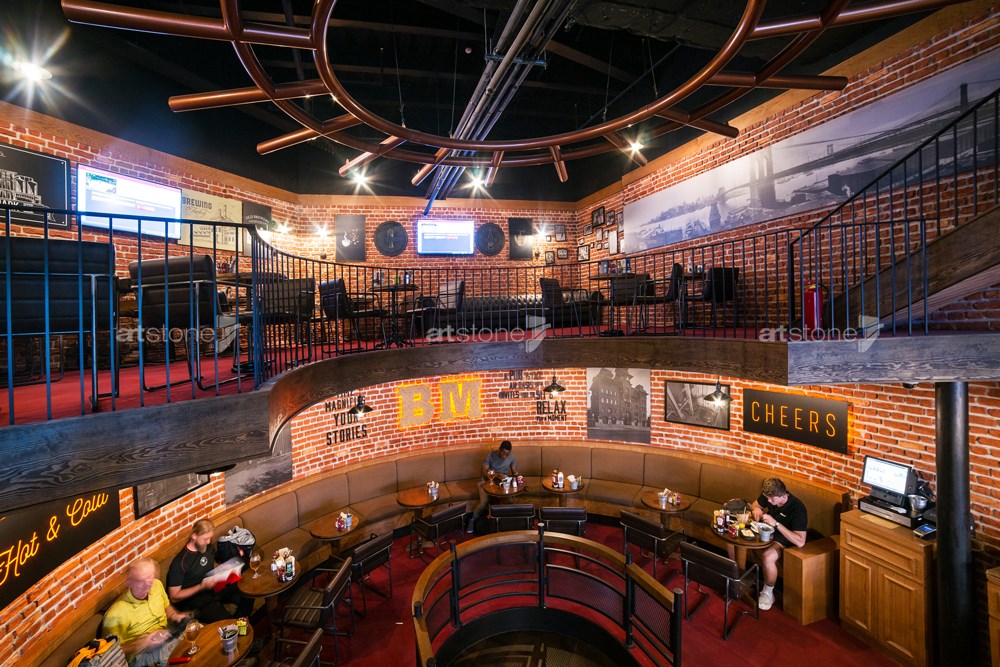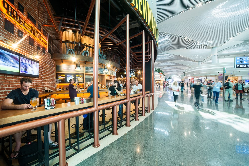 Yeni havalimanında yer alan ve ziyaretçilerin uğrak noktalarından biri olmayı başaran Brewmark’ta Artstone Tuğla serisi ürünlerinin en eskimeyenlerinden Ladrillo Loft kullanıldı.