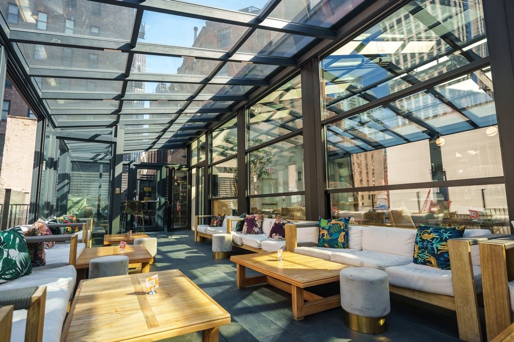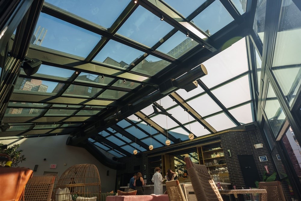 New York, Broadway'de yer alan eski bir ahşap yapıyı, biyoklimatik bir pergola ve yüzme havuzunun yanına kurulan katlanır kollu tenteden oluşan, kişiye özel yeni bir gölge çözümüyle değiştirmek. Rezidansın benzersiz özellikleri göz önüne alındığında, mülk sahipleri işlevsellik ve prestiji birleştiren son teknoloji ürünlerin bir kombinasyonunu arıyorlardı. Bu kombinasyon Schildr ürünleri ile sağlandı.