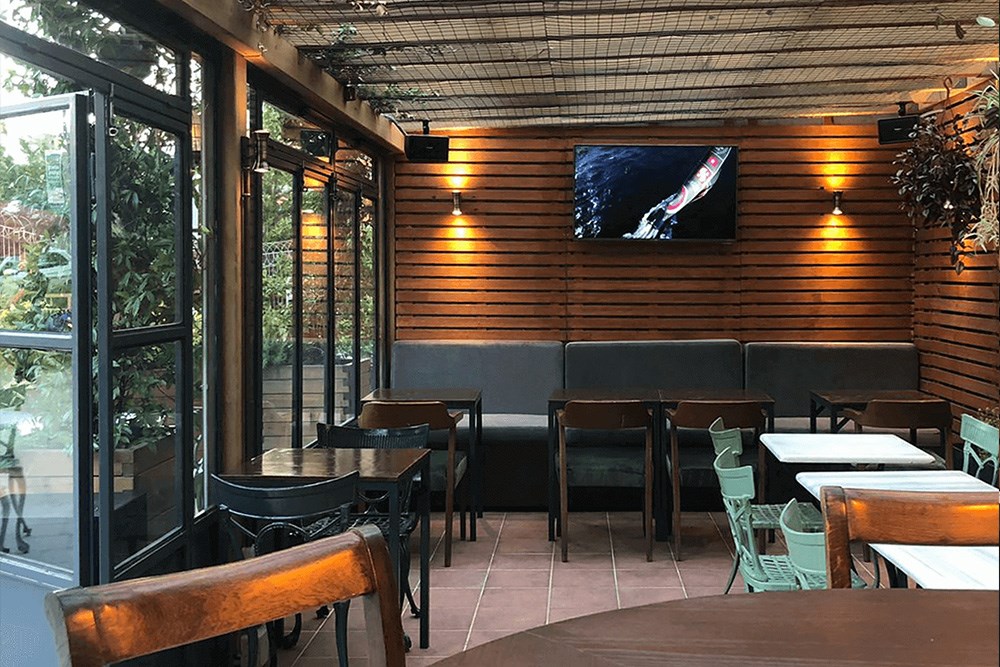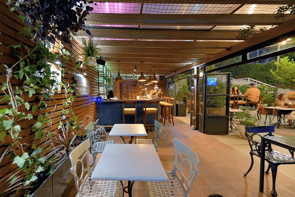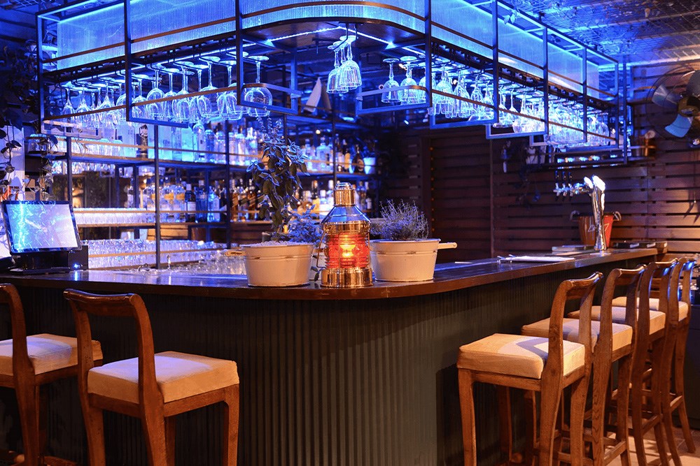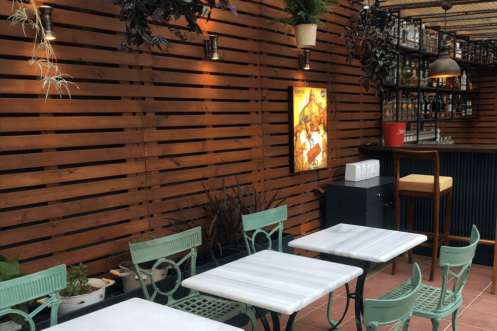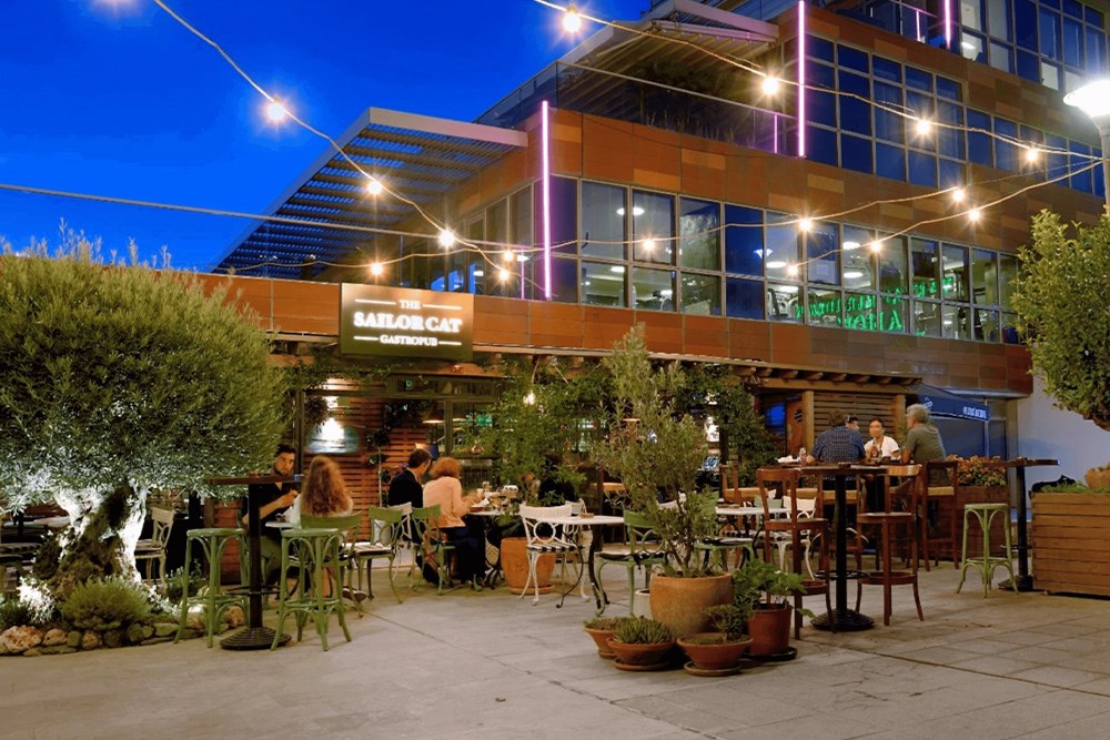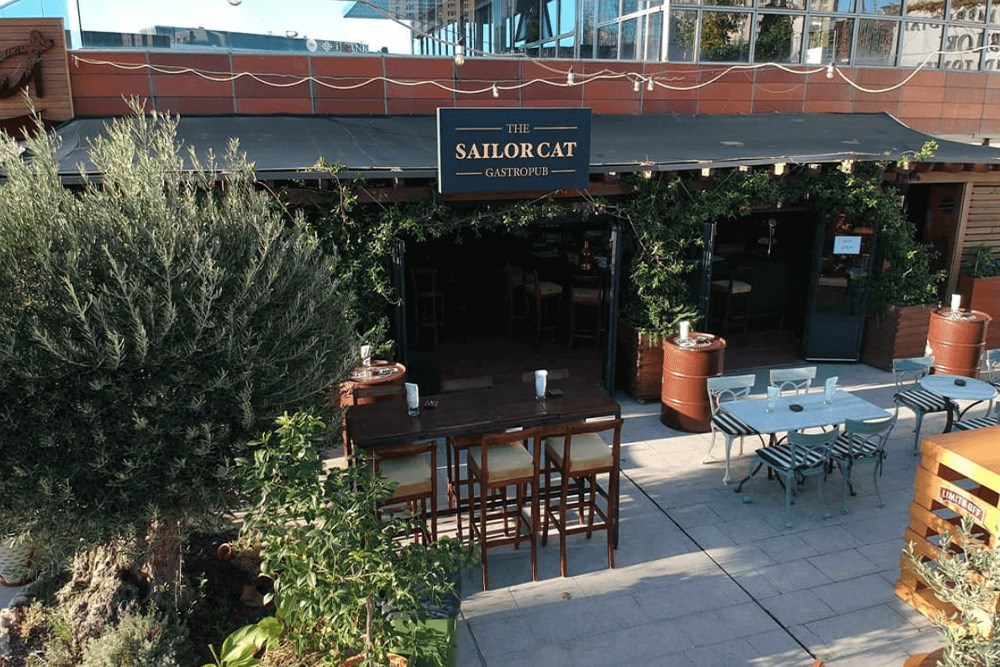 Batı Ataşehir'de yer alan mahalle barında yapılan işler mimari tasarım, uygulama yönetimi ve kurumsal kimlik çalışmalarını kapsar. İşletme kimliği, sahiplerinin denizle yakın ilişkileri ve deniz seyahatlerinde onlara eşlik eden denizci kedileri üzerine şekillenmiştir. İçinde yer aldığı yapılı çevrenin sert zemin çokluğu içerisinde, peyzaj ile canlanan, hem gündüz hem gece, farklı mevsim koşullarında farklı kullanım imkanları sunan mekanda bir çeşit rahatlık hissi aranmıştır. Mekanın üzerini örten şeffaf çatı, her mevsimde içeride yer alan bitkilerin ışık almasına ve soğuk havada güneşle mekanın ısınmasına imkan verir. Yazın çatı açıldığında ve mekan önündeki meydana taştığında ise pergolalı bir yaz barı halini alır. İç mekanda ana unsur bar bölümüdür. İkinci el olarak tercih edilen mobilyalar ve diğer malzemeler mekana adapte edilerek kullanılmıştır. Meydana dikilen zeytin ağacı, pergolayı ve cepheyi saran yıldız yaseminler, iç mekanda duvarda yer alan sarmaşıklar zamanla büyüyüp peyzaj oturdukça verilmek istenen his daha da güçlenecektir.