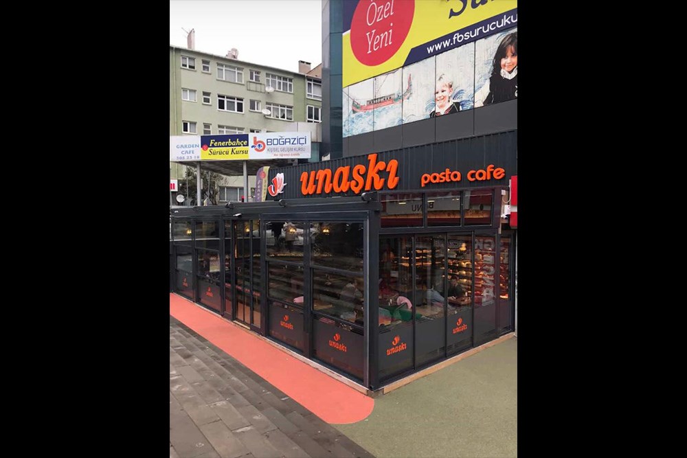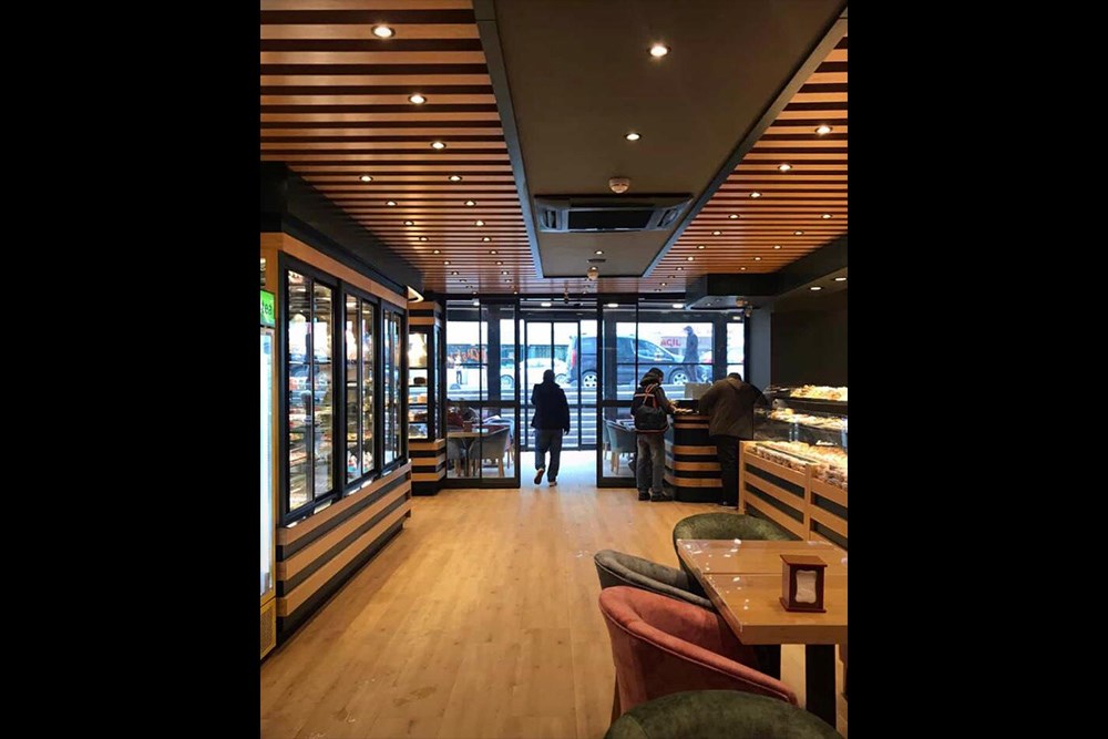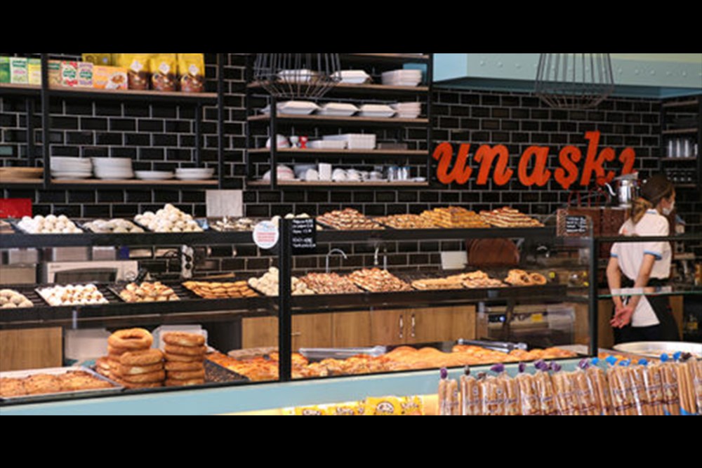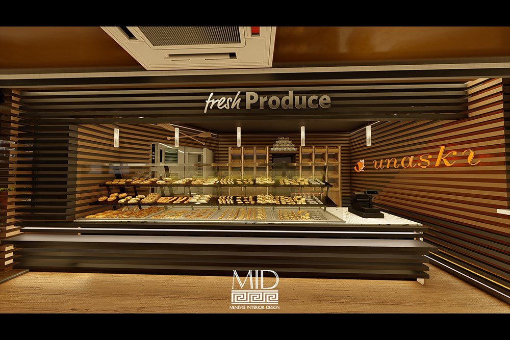 İstanbul Bahçelievler - Haznedar’da bulunan Un Aşkı zincirinin 250 m²’lik şubesinin tasarımı, yüksek üretim kapasitesine uygun, tatlı-pasta teşhir dolaplarının ve baristanın sirkülasyona göre en iyi yerleşimini göz önünde bulundurularak, ahşap dokusunu perspektife katarak bir tasarım gerçekleştirildi. Menevşe İç Mimarlık tarafından tasarlanan Un Aşkı Pastane & Cafe dekoratif panel, seramik ve ahşap dokulu malzemeler kullanıldı.