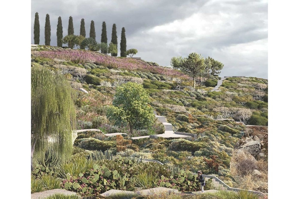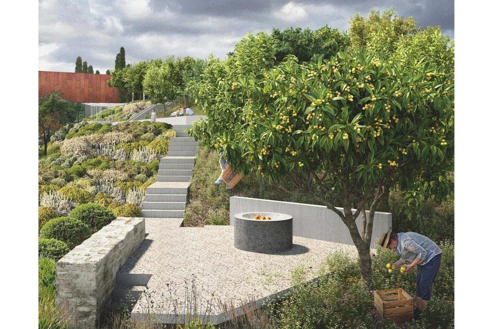 Böylesine bir tahribat doğasında yeni ve yaşam dolu, modern bir peyzaj mimarlığı tasarımı olarak projede, zorlayıcı topografik özellikler peyzajın tektonik etüdleri için bir avantaj oldu. Girişten itibaren rampa patikalarla erişilen, rüzgarlara göre yerleşimleri belirlenen terasların odak Aloni’ler olarak tasarlanması, Aloni’lerin bağlandığı güzergahları tarif eden patikaların temalarla sürekli hale gelişi, vista açıları ve yeni oluşan duraklar için belirleyiciydi. Ailenin çok çeşitli canlılarla birlikte yaşam üreten peyzajında güzergahlara eşlik eden Ege ve Akdenizli bitki gruplarıyla birlikte tasarlanan, bahçe odaları üreten güneyli bahçeler ve kuzeyde üretimlerin olabileceği lavanta tarlası ve komşu bir üzüm bağı, bağı koruyan ve sınırları işaretleyen gelecek anıtları serviler peyzaj mimarlığı tasarımı tamamlıyorlar.