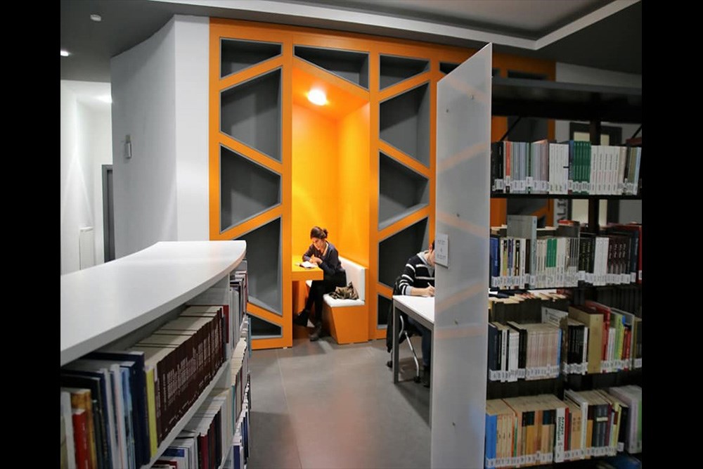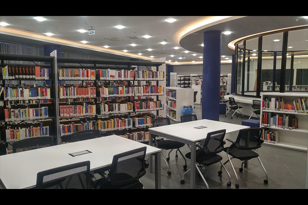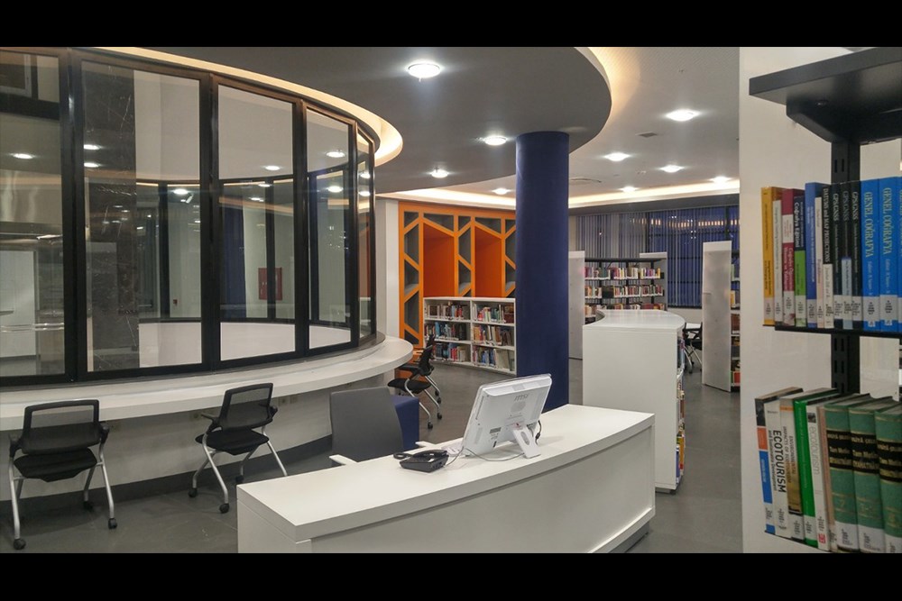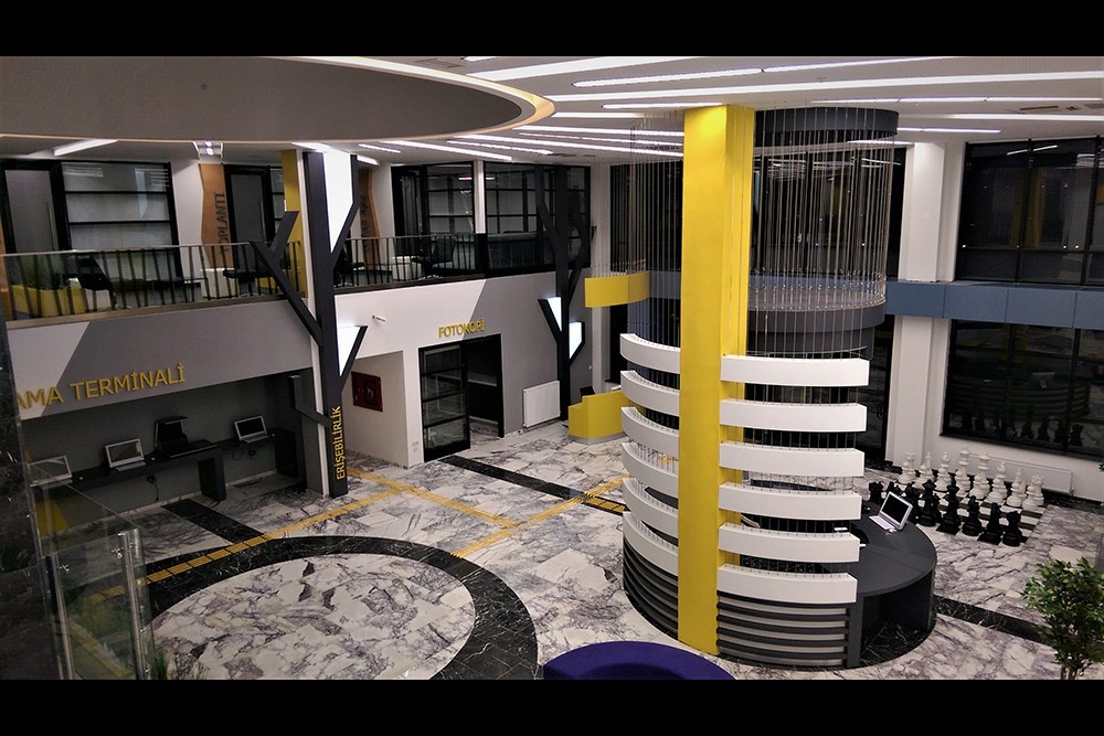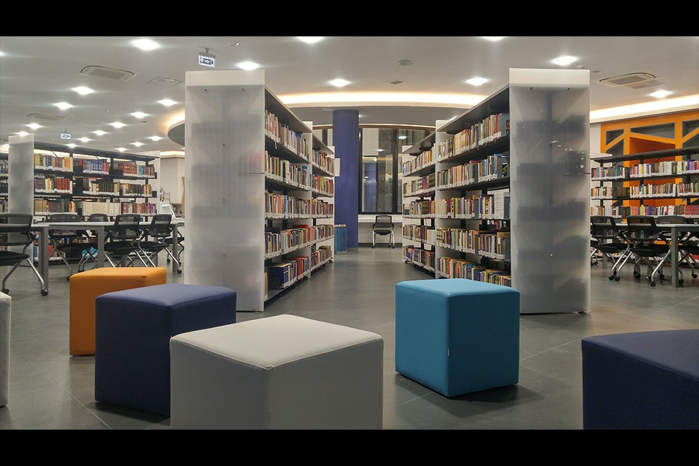 Kütüphane binası gerek dış yapısı ile gerek iç mekân tasarımı ile alanında bir ilktir.