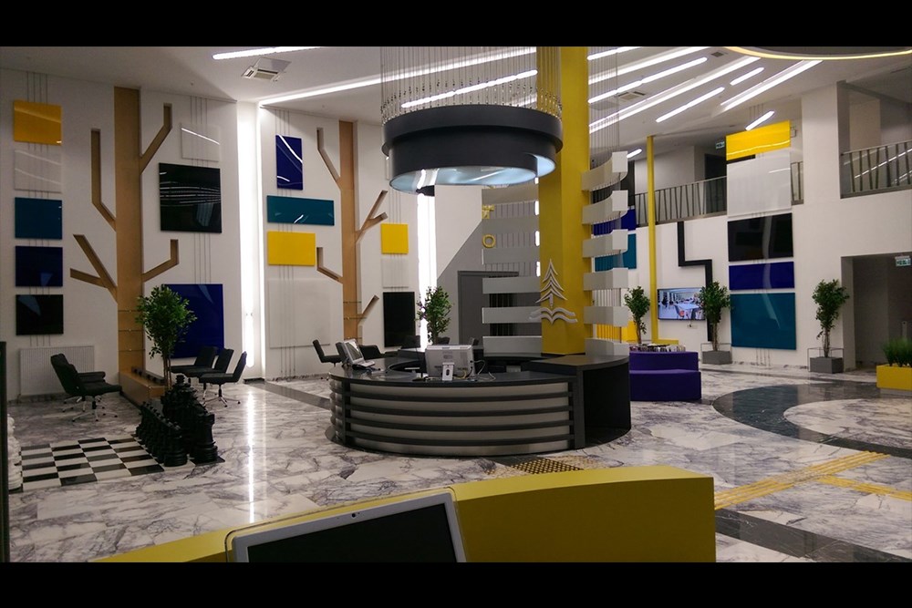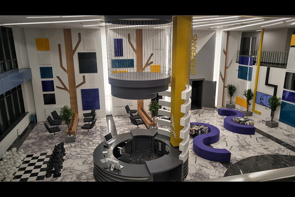 Proje alanı 4000 m2 olan yapının iç mimari projeleri Alkor Yapı İnşaat Mimar & İç Mimar Leyla Yücel tarafından tasarlanmıştır.