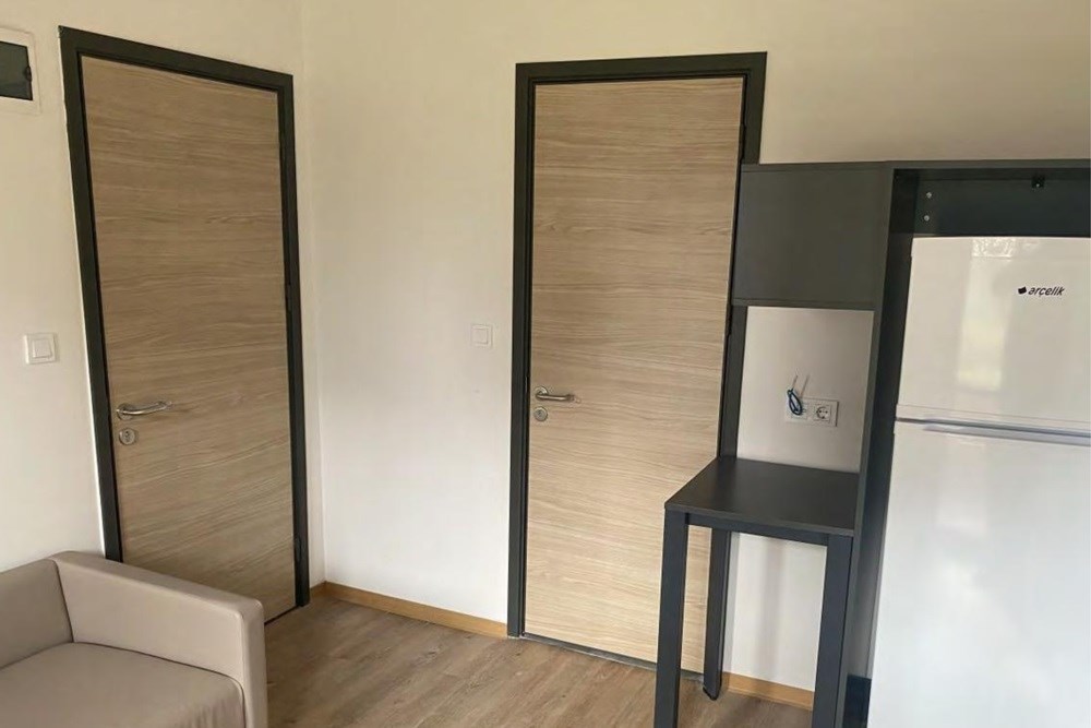 Kampüs bünyesindeki Unihall öğrenci yurtları, 12 bloktan oluşmakta ve 1, 3 ve 4 kişilik oda seçenekleriyle toplamda 403 öğrenciye konforlu yaşam alanları sunmaktadır. Bu yurtlarda kullanılan tüm mobilyalar, öğrencilerin günlük ihtiyaçlarını karşılayacak dayanıklılıkta ve estetik anlayışıyla tasarlanmıştır.