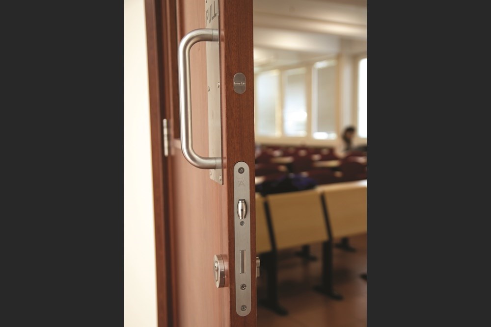 Proje kapsamında kullanılan yangın dayanımlı ahşap kapıların duman sızdırmaz özelliği, yangın anında öğrencilerin ve görevlilerin duman zehirlenmelerine maruz kalmalarını minimum seviyeye indirir. Projede 30 dk yangına dayanımlı ahşap kapılar kullanılmıştır. 42 mm kasa, 43 mm kanat kalınlığı olan bu kapılarda yüzeysel kapı kapatıcısı, ses fitili, ısıyla şişen cam fitili, yangın ve duman fitili mevcuttur.