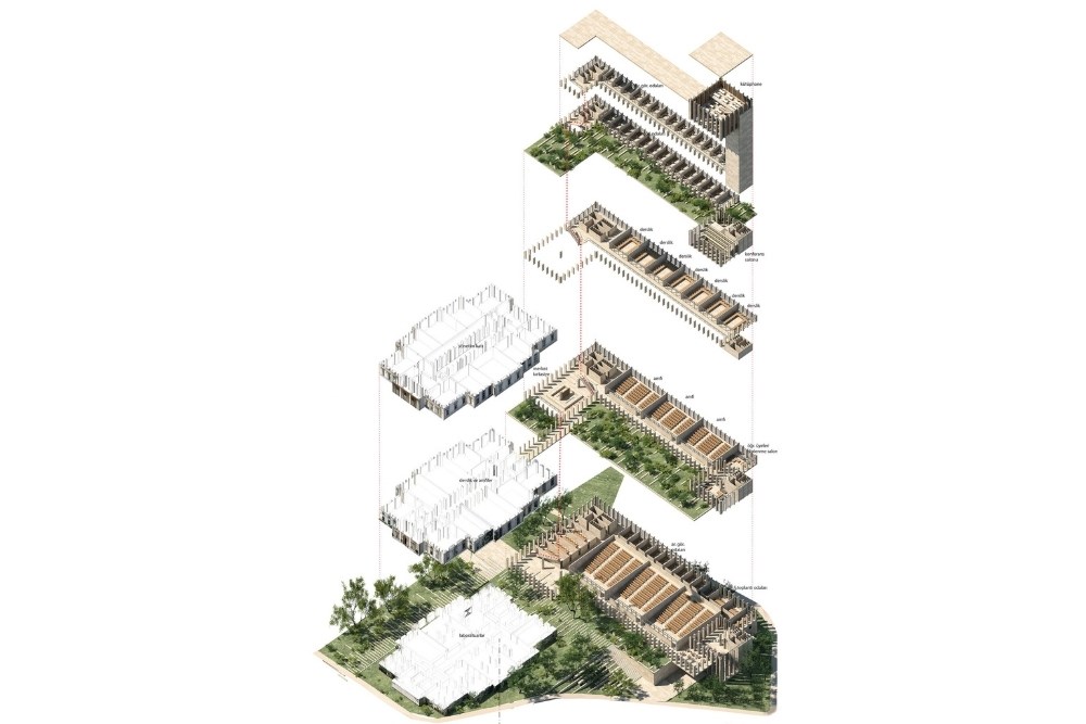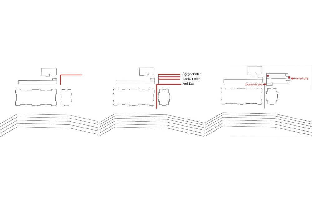 Yeni bina önerisi, amfileri, sınıfları, toplantı odalarını, öğretim ve araştırma görevlileri odalarını kapsarken bu işlevlerden amfiler ve laboratuvarlar Karakol binasına da sıçrar, böylelikle eski binanın da deneyimlenmesi gerçekleşmiş olur.