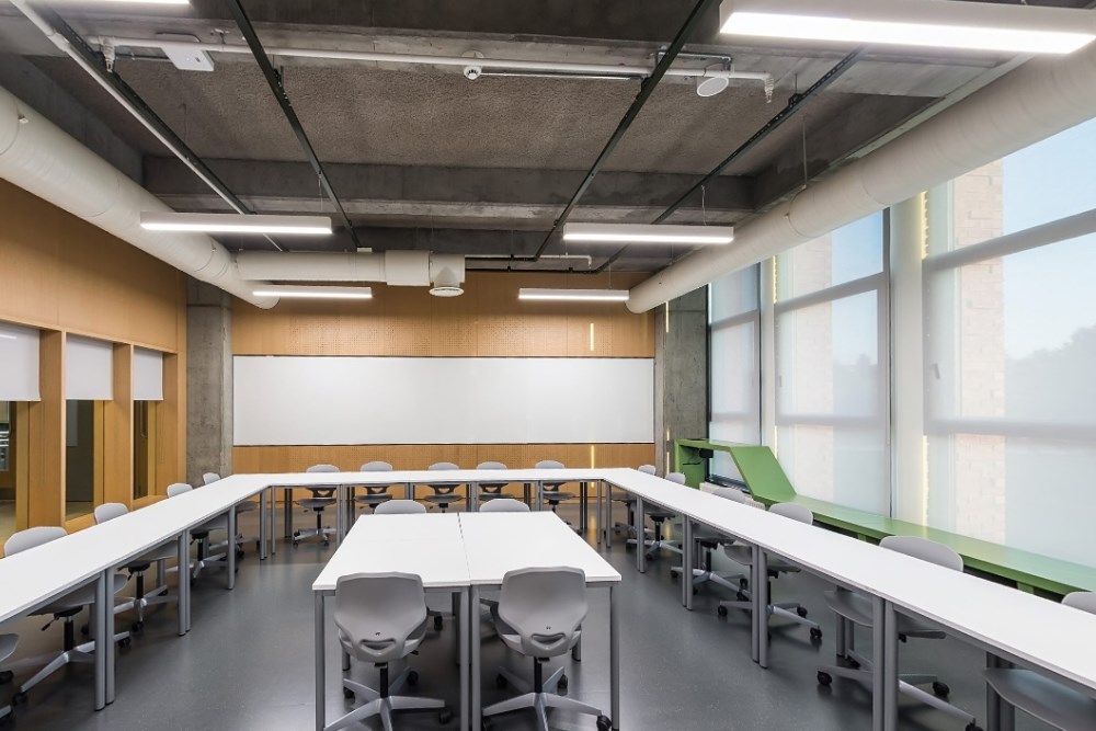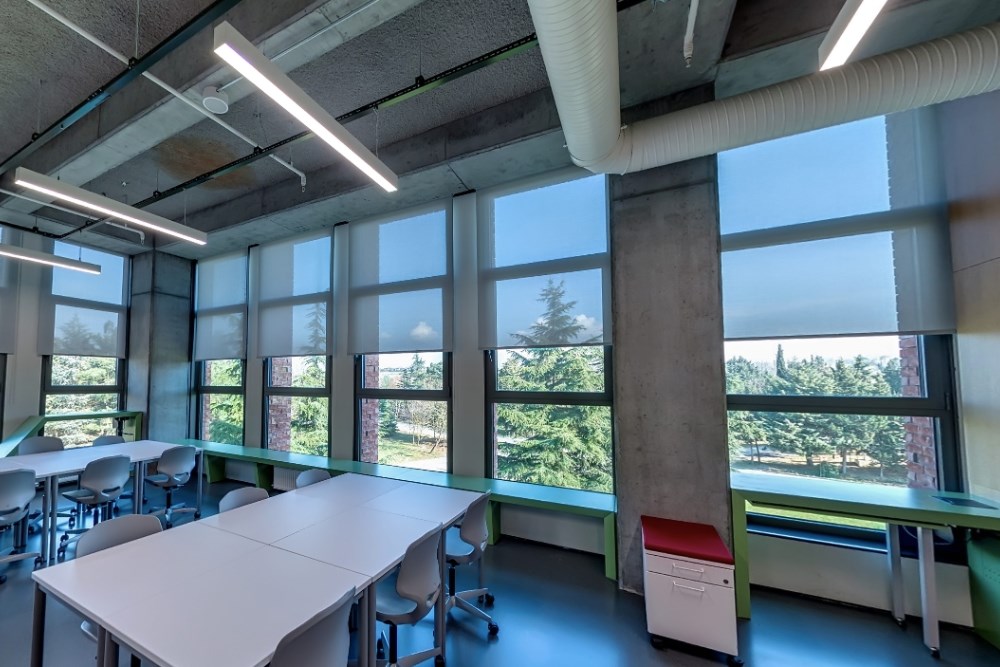 Eğitim öğretim mekanlarında oldukça önemli bir konfor etmeni olan hacim akustiği düzenlemesi, Adım İnşaat’ın ürün portföyünde yer alan,dekoratif, sürdürülebilir ve yüksek ses sönümleme performansına sahip Sonaspray ECO akustik kaplama malzemesi ile sağlanmıştır. Sınıflar, stüdyolar ve laboratuvarlarda toplam 4400㎡’lik bir alanda tavan uygulaması yapılan Sonaspray ile uğultu, reverberasyon ve gürültü problemi ortadan kalkmıştır.