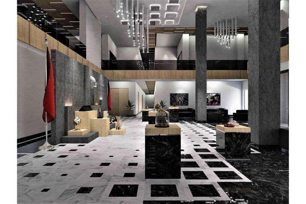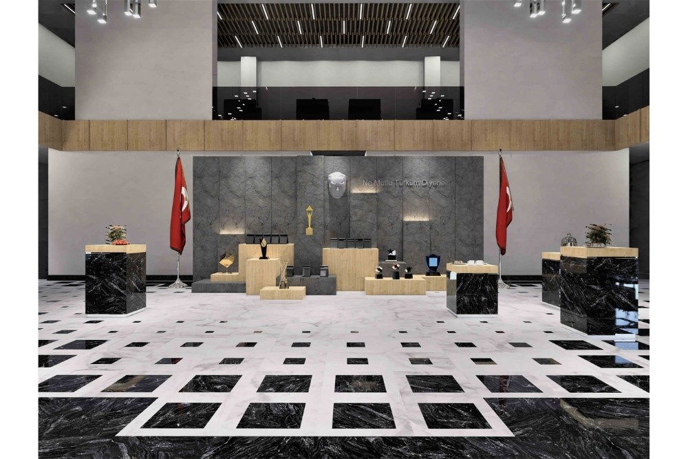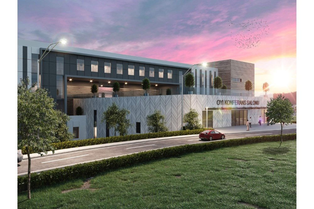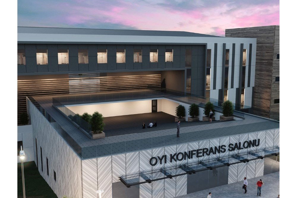 Sosyal tesis kütlesi ön cepheden uzatılarak alt bölümü giriş kısmı olarak planlanmıştır. Arka cephede ise bu kütlenin çatısı amfi-tiyatroya dönüşmektedir. Kütlelerin kesiştiği alanlarda bazı mekanlar geri çekilerek giriş vurgulanmıştır. Ek olarak, malzeme ve renk seçimleri ile cephedeki düzen ve güç algısı arttırılmıştır.