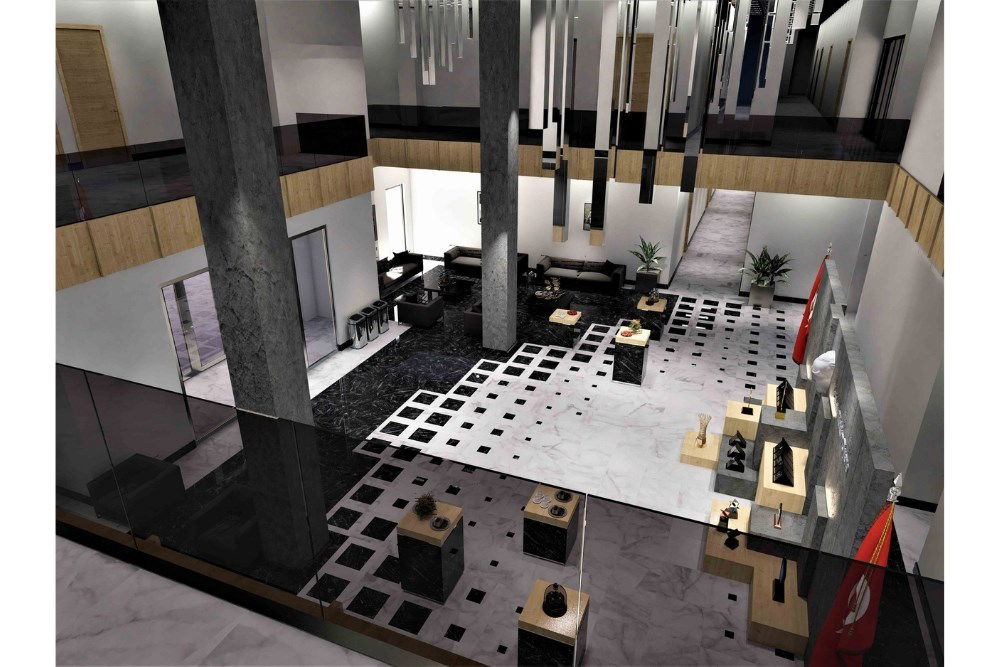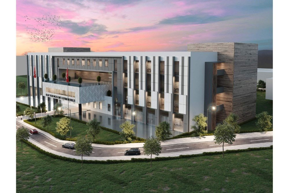 Yapıda istenen fonksiyonlar iki ana kütlede çözümlenmiştir. İdari ve eğitim birimlerinin yer aldığı kütle arsanın düz alanına yerleştirilmiştir. Sosyal birimlerin yer aldığı diğer kütle ise, arazinin doğal eğimi kullanılarak, eğimin yüksek olduğu yamaç tarafına oturtulmuştur. Eğitim ve idari birimlerin tek bir çatı altında toplanması ve sosyal kütlenin araziye uygun yerleştirilmesinin inşaat maliyetini etkin bir biçimde düşüreceği öngörülmüştür.