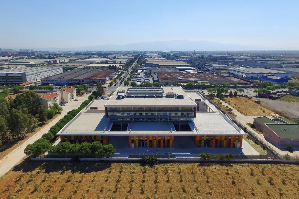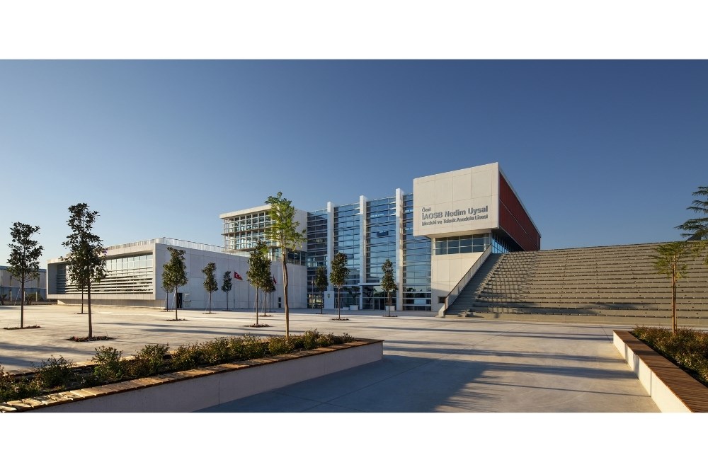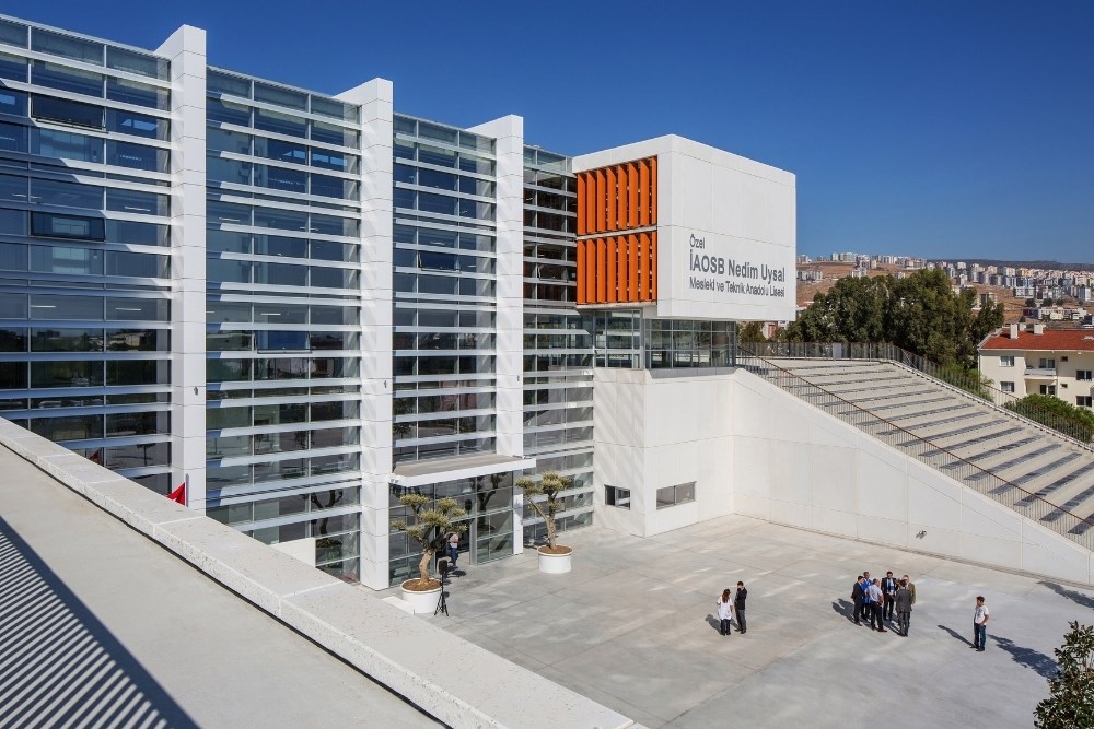 İAOSB – İzmir Atatürk Organize Sanayi Bölgesi yönetiminin sosyal sorumluluk projesi kapsamında, Nedim Uysal’ın bağışıyla gerçekleştirilen okul yapısı, düzenlenen davetli yarışmada seçilen öneri doğrultusunda hayata geçirilmiştir.