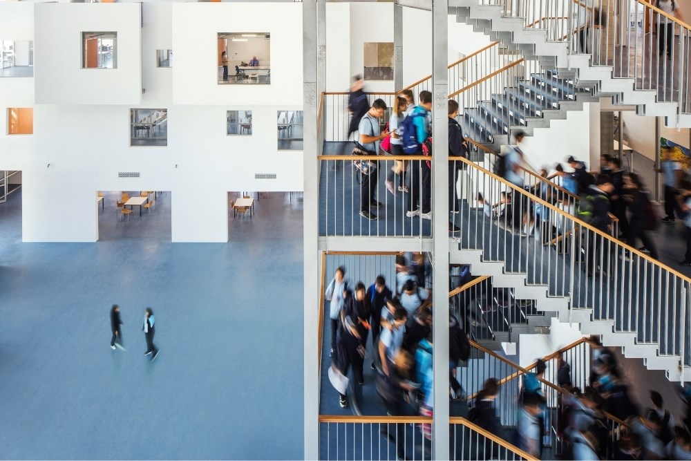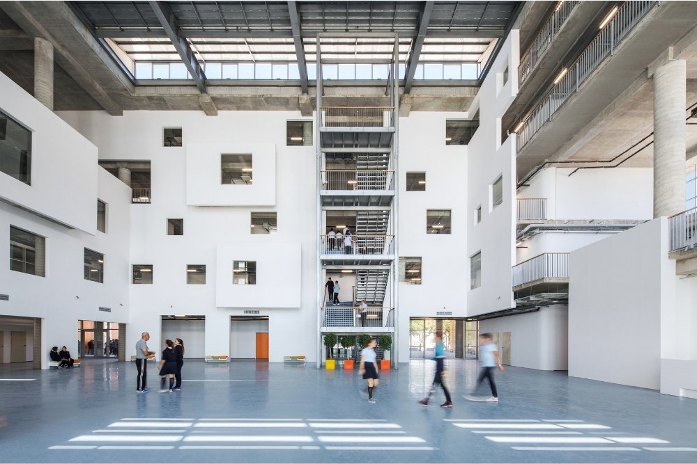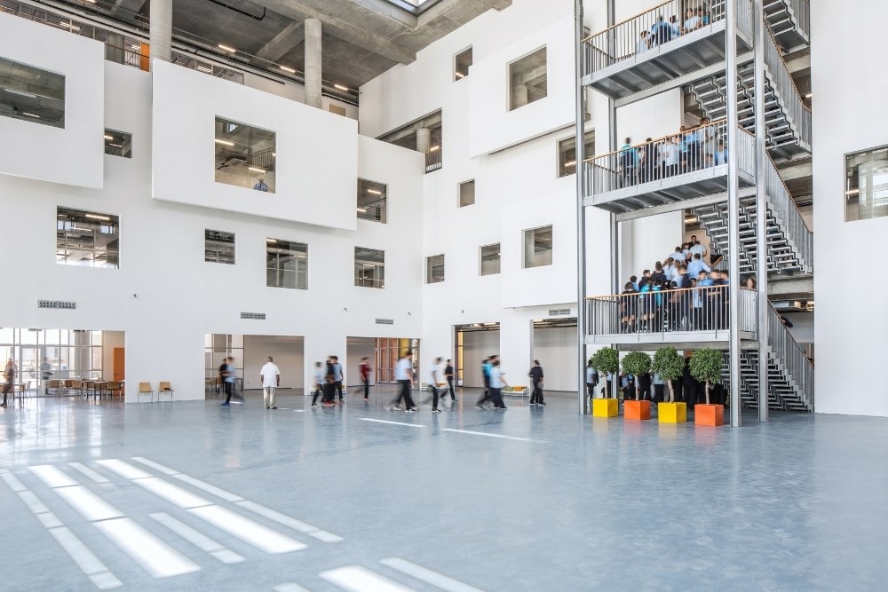 Yapının iç kurgusunda oluşturulan bu zengin yaşam, zemin kotunda bloklar arasında tanımlanan farklı karakter ve programlara sahip sosyal nişler aracılığıyla dış mekâna taşırılmıştır. Bu nişler; kimi yerde spor ve oyun bahçesine açılan kantin ve yemekhane alanları, kimi yerde atölyelerin ilişkilenebildiği açık işlikler veya teneffüs mekânları, kimi yerde ise giriş meydanı ve tören alanını tanımlayan kamusal odaklar olarak biçimlenmiştir.