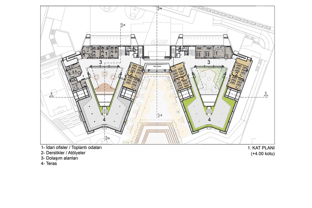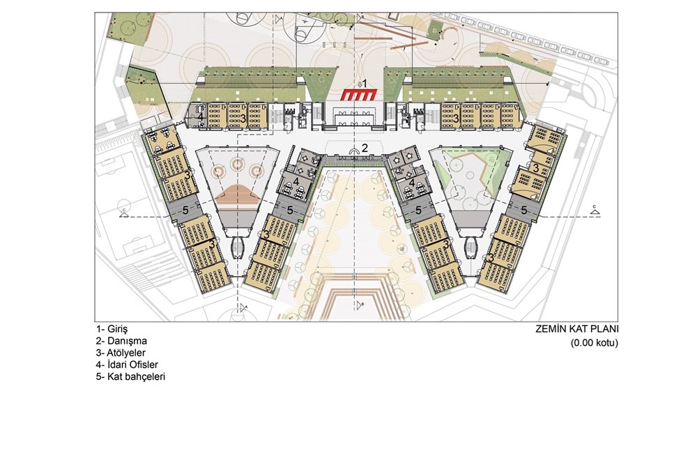 İstanbul’un kentsel dönüşüm alanlarından Çekmeköy’de, bildik okul tipolojisinden farklı bir yaklaşımla tasarlanan okul binasının üzerinde konumlandığı mevcut eğimli arazi, çağdaş eğitim/öğretim anlayışının gerektirdiği mimari ihtiyaç programına en yetkin yanıtları vermek adına bir avantaja dönüştürülmüştür. Projenin tasarımı bol, kolay ulaşılır açık teneffüs alanlarına ve doğal ışığa verilen önemle şekillenmiş, iki üçgen binadan oluşan okulda, sınıfların açıldığı geniş, üçgen iç avluların, kat bahçelerinin olması ve her kattan rahatlıkla erişilen açık teneffüs alanlarının yer alması, açık-kapalı alan ilişkisini güçlendirmektedir. Okul iç mimarisinde, renk konsepti ve geometrinin mekansal dili kullanılarak enerjik ve kullanıcılar için yönlendirici alanlar elde edilmiştir. Proje, 2013 yılında Iconic Awards'dan "Concept Winner" ödülünü kazanmıştır.